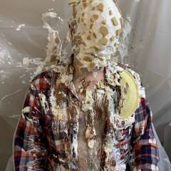 Gungelove was surprised by Coilean with a big sloppy cream pie to the face